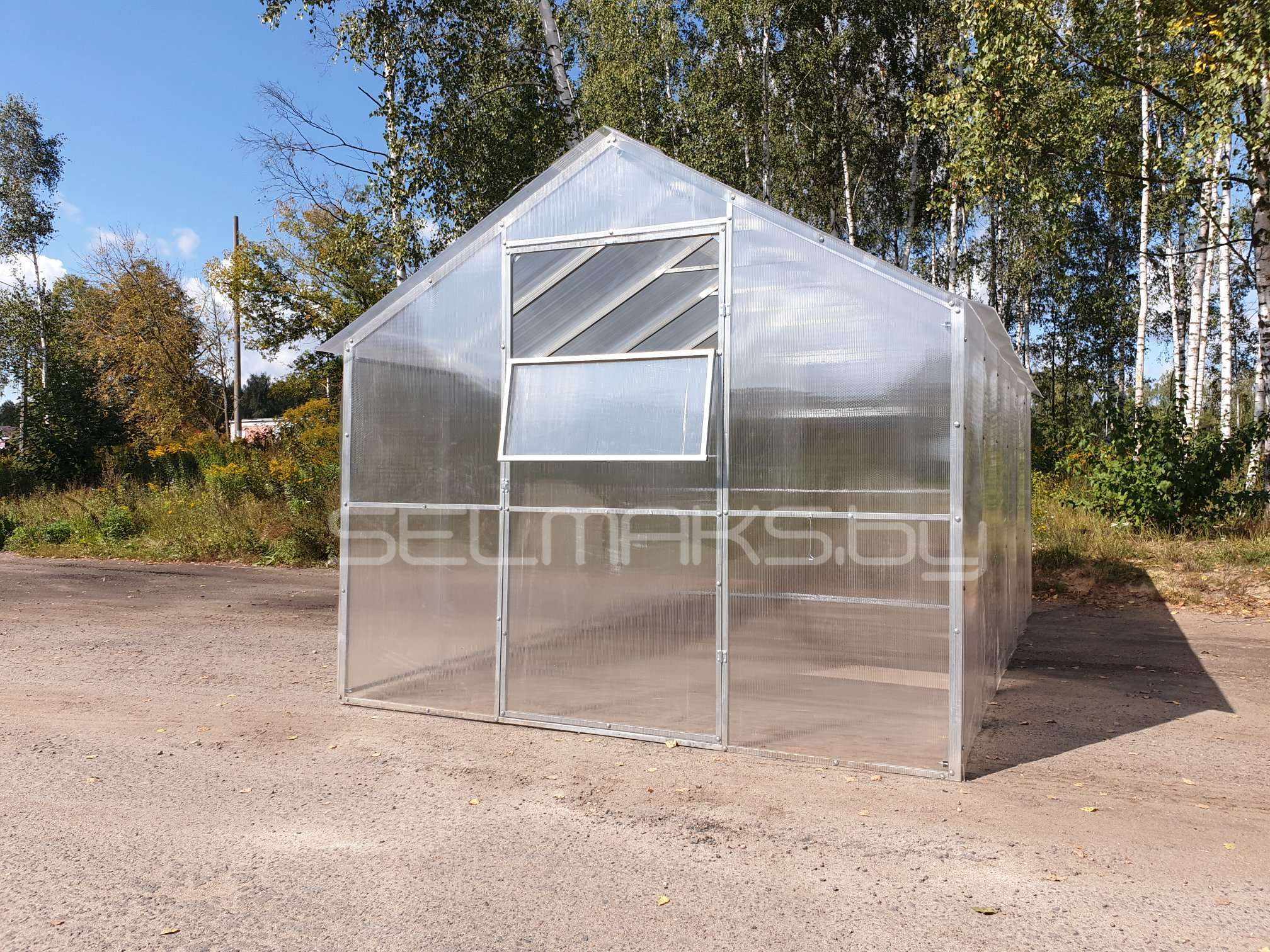 Мы производим теплицы в промышленных масштабах. Производим теплицы как для тепличных комплексов, так и дачных хозяйств. Производим для Беларуси, России, Евросоюза. Мы сами производим и теплицы и поликарбонат.